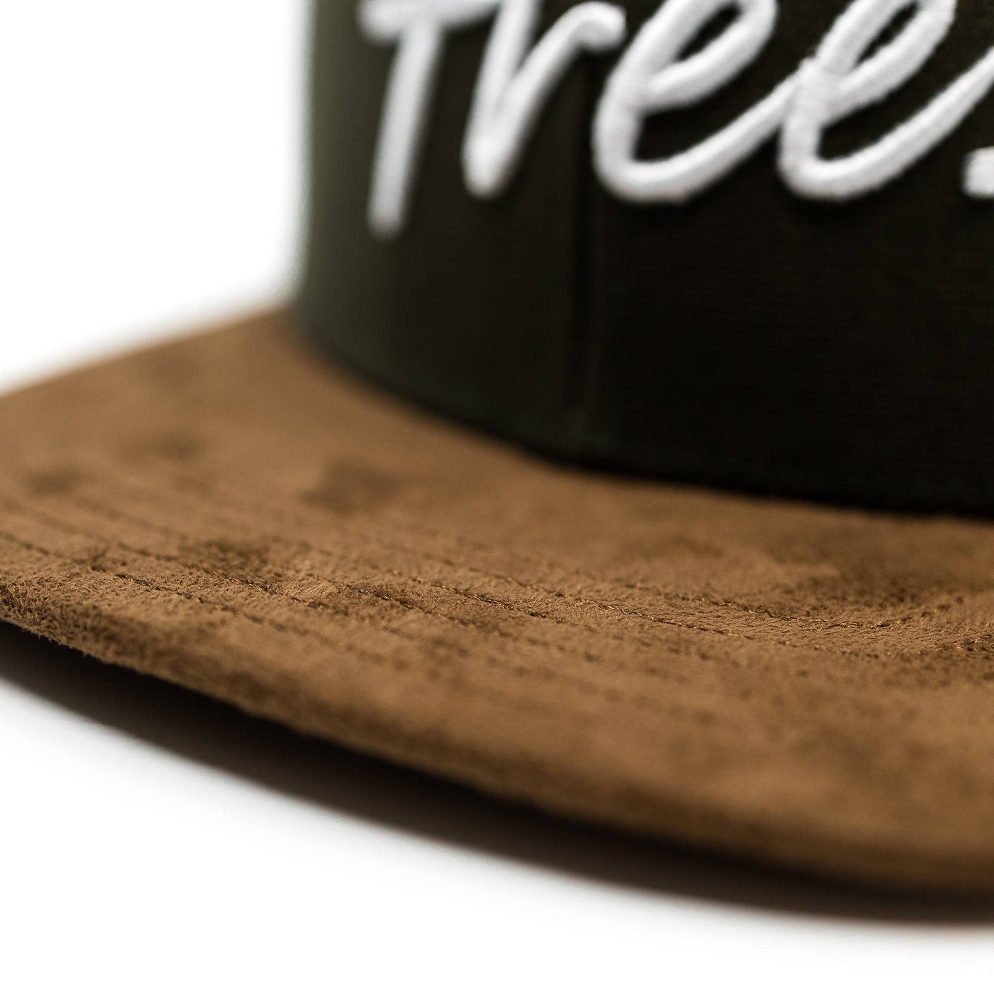 Feel free! Egal ob beim Wandern, Reisen oder im Alltag. Hauptsache du fühlst dich frei und strahlst es auch nach außen. Bei unserer Free Cap trifft robustes Canvas Material auf samtige Wildlederoptik. Mit unserer Free Cap schufen wir die ideale Cap für einen casual Look in allen möglichen Situationen. Schlicht, hochwertig und absolut ansehnlich. Infos zum Snapback Cap: Der Free Schriftzug wird mit einem hochwertigen 3D Stick auf die Vorderseite des Caps gestickt. Die Cap Krone überzeugt darüber hinaus mit seinem dunkelgrünen Canvas Material und wird durch die braune Wildlederoptik des Schirms abgerundet. Zusätzliches Feature: Auf der Unterseite des Schirms ist ebenfalls das Free Design per Flachstick angebracht. Ein echtes Unikat mit Liebe zum Detail.